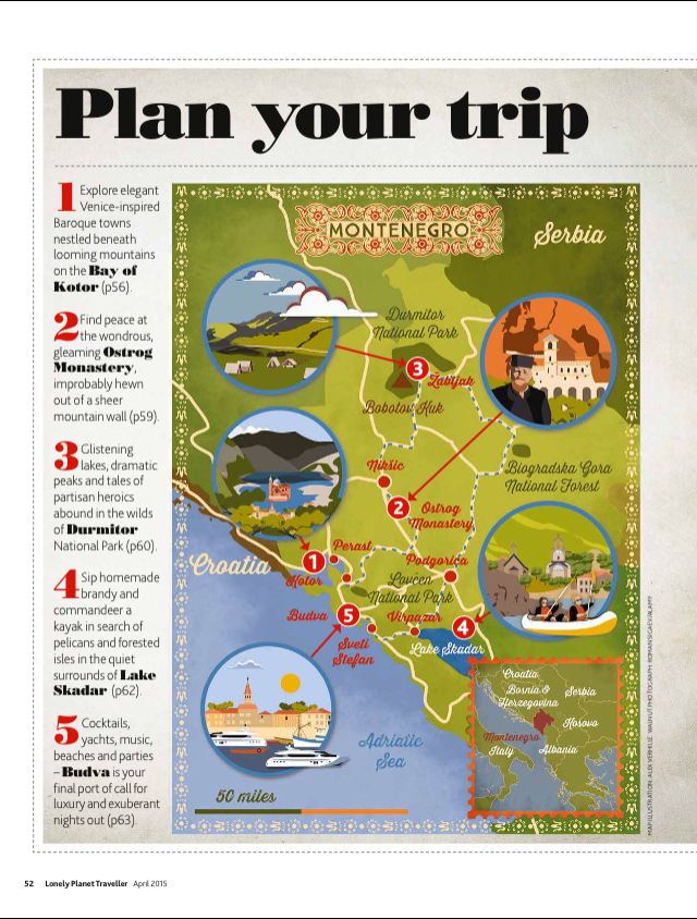 Lonely Planet Traveller magazine has a 13 page feature on Montenegro in their April 2015 issue – and we feature on 4 of them!