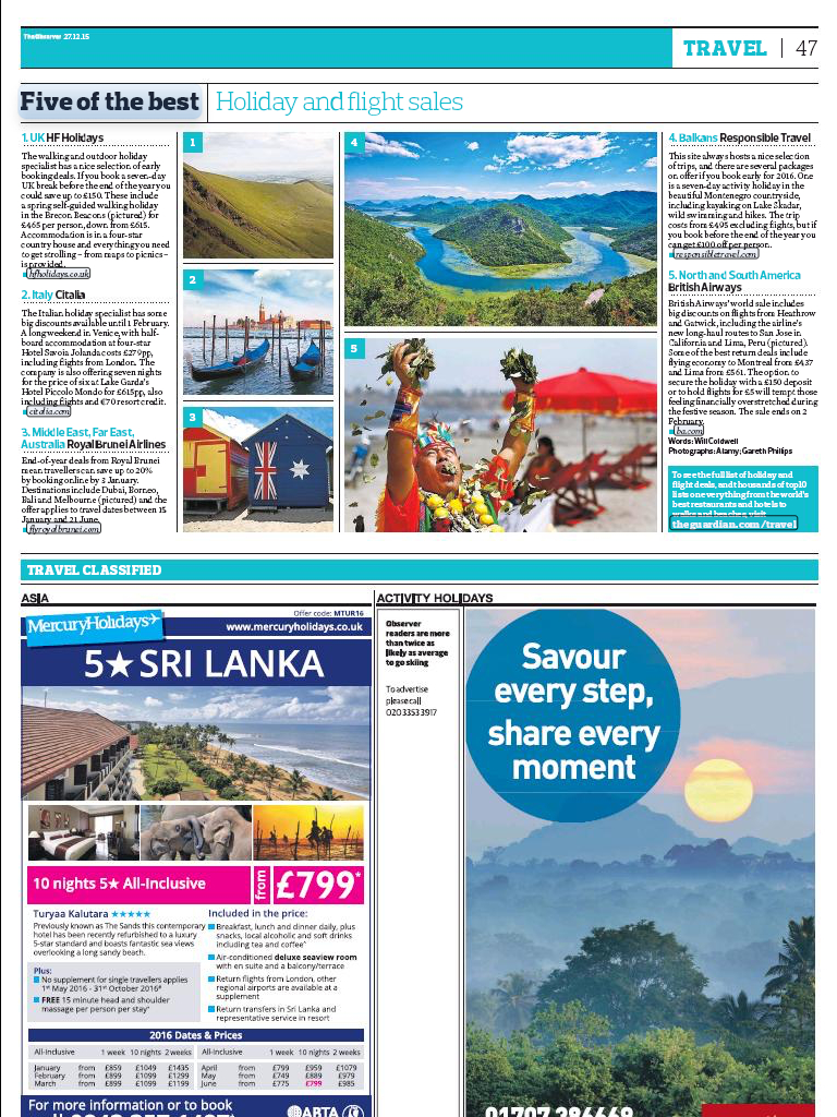 The Observer newspaper rates us as one of the five best holiday deals available!