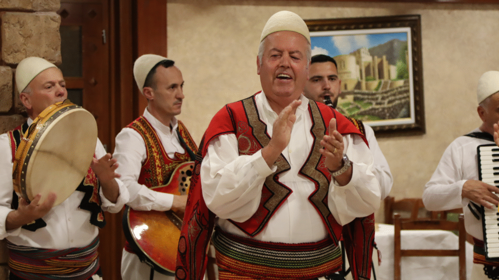Albanian folk music is known as iso-polyphonic singing. Songs consist of two solo parts, a melody and a countermelody with a choral drone. If you’re interested, the Lëpushë summer festival is a great place to watch this.